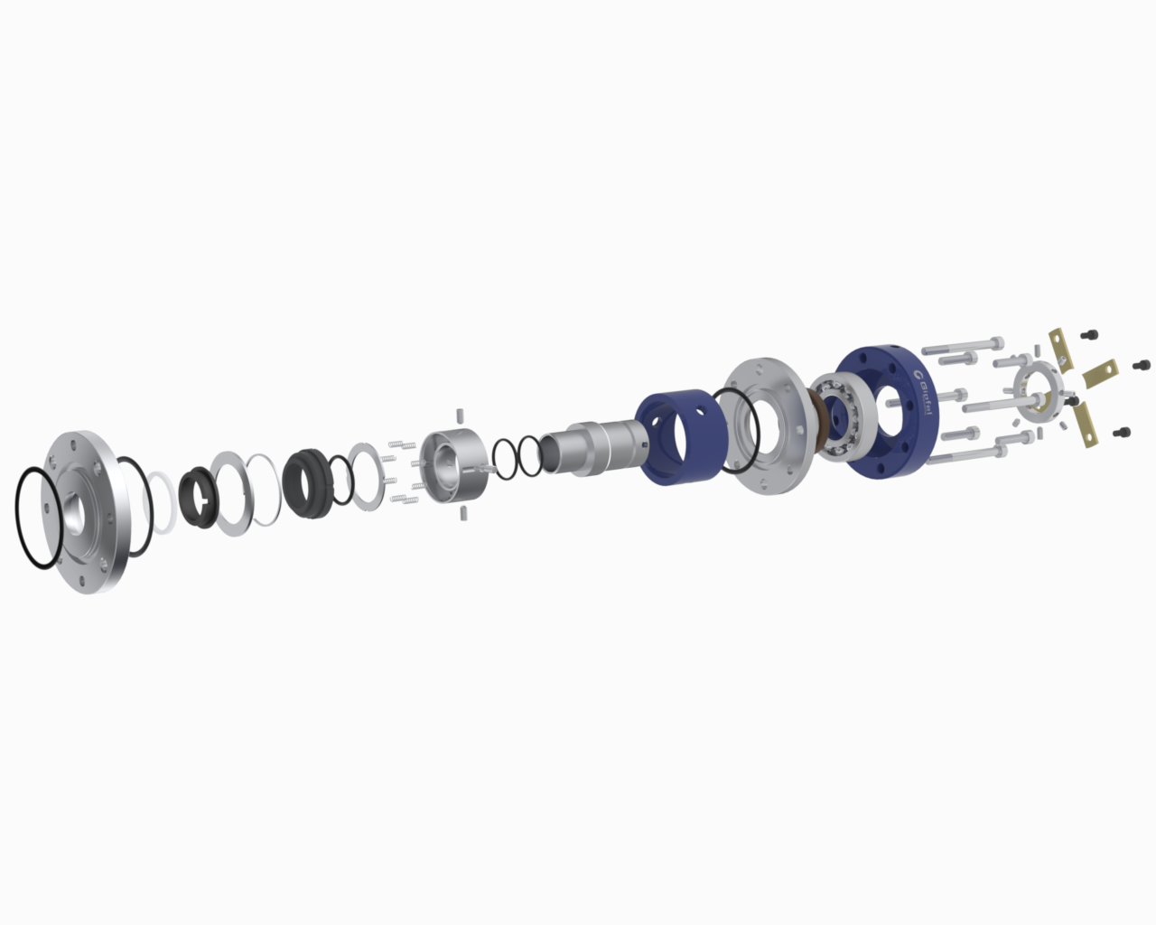 - An integrated bearing stabilizes shaft and ensures concentric seal face alignment